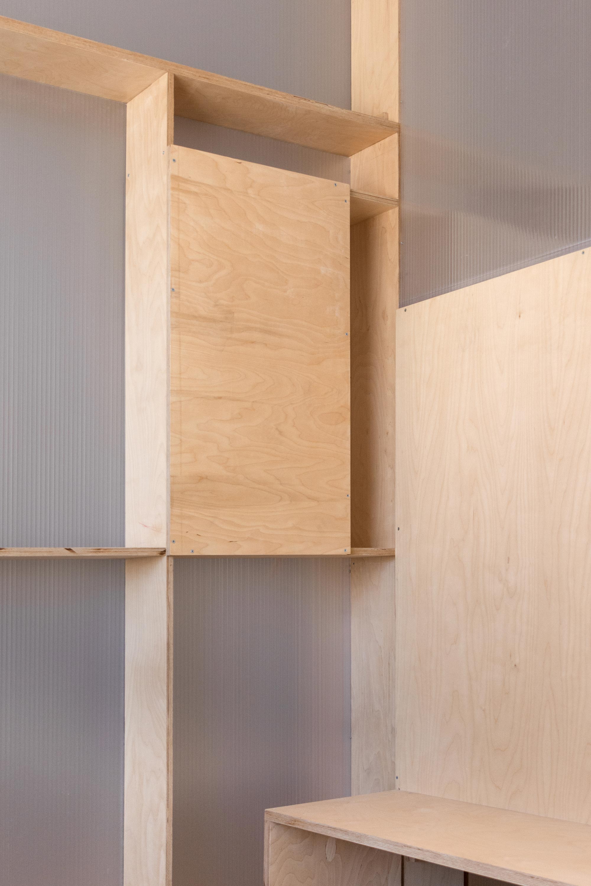The bulky door handles are custom made and the doors are inset fitted, to expose the playful grid lines.