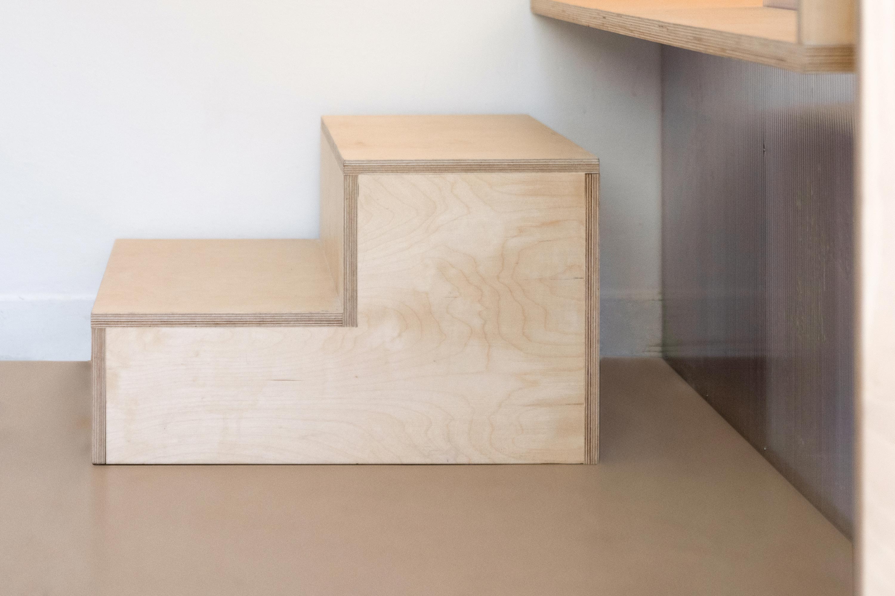 The design is made of 2 systems. One is the main structure, and the other is the bed frame. The bed frame is “hanging” from the main structure, to give enough head room wehn sitting on top, and when climbing the stairs.